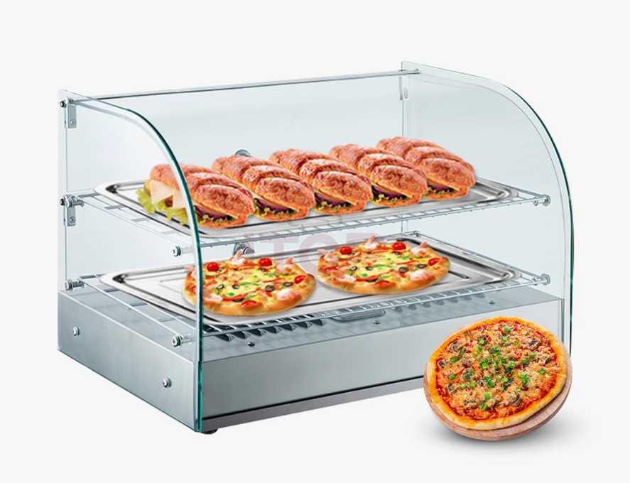 Téamh laghdaithe go minic: Go traidisiúnta, b’fhéidir go mbeadh ar bhaill foirne lónadóireachta bia a théamh go minic chun a theocht a choinneáil. Is féidir le caibinéid taispeána téite tráchtála, áfach, líon na dtimthriallta téimh a laghdú trí chothabháil teochta leanúnach, rud a laghdóidh ualach oibre na foirne.